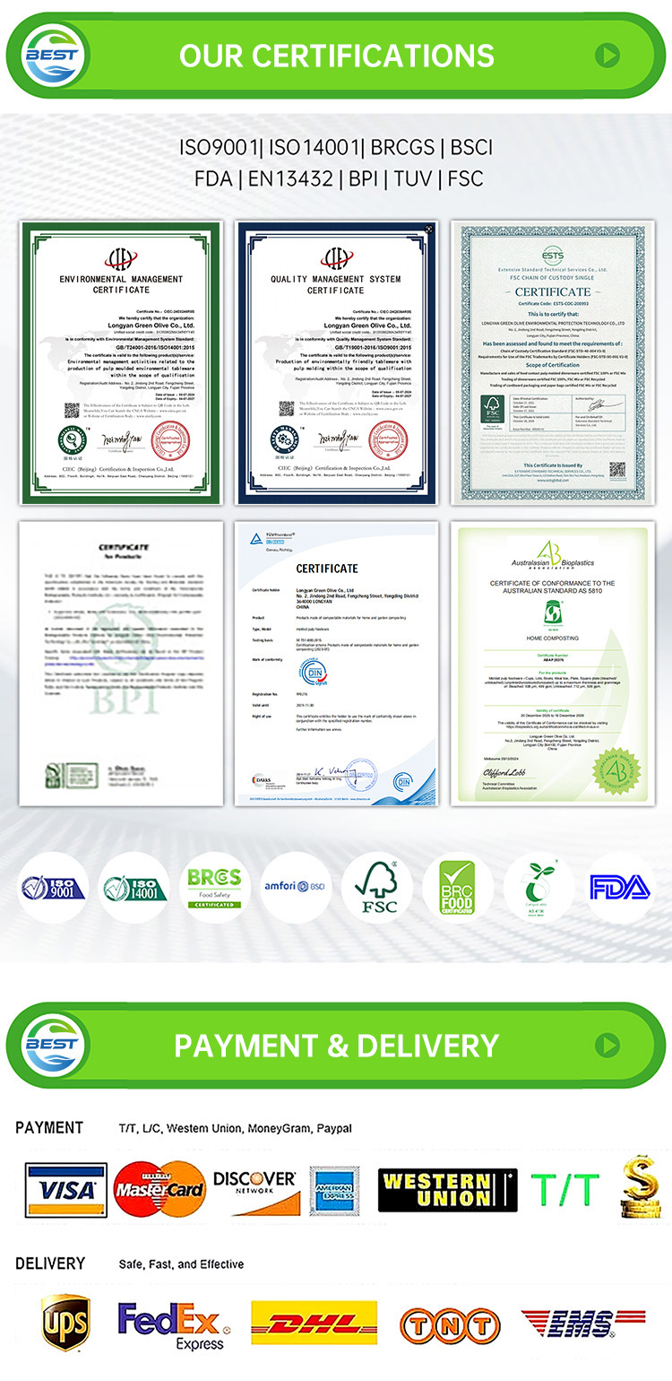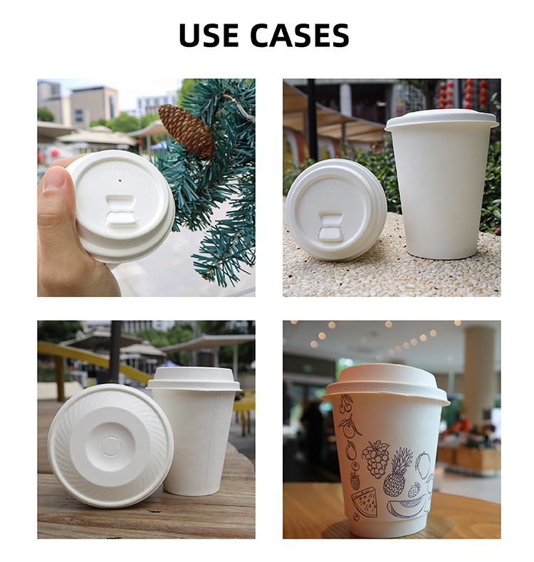 Plant fiber pulp molded cup lid, using environmentally friendly sugarcane pulp and bamboo pulp raw materials and precision leak proof structure design, combines excellent sealing and convenient use, suitable for various takeaway scenarios such as coffee, tea drinks, hot and cold meals, etc. After use, it can be completely biodegraded and return to natural circulation, making it a green and ideal choice to replace traditional plastic covers.